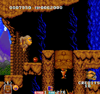unattainable items or platforms. Juju Densetsu also features a alternating two-player mode.