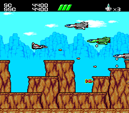 The player takes control of a high-tech fighter plane and flies through canyons,