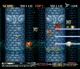 weapons hidden inside capsules scattered throughout the game - they include large lasers,